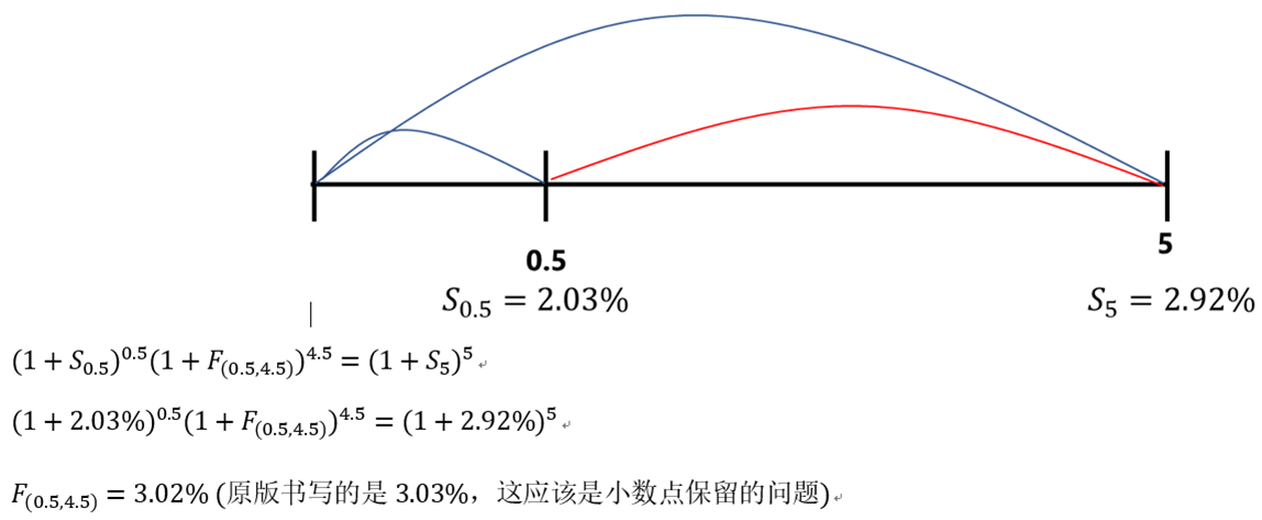 因此根据收益率曲线,我们可以计算出6个月以后隐含的4.5年的远期利率是3.03%。而3.03%相较于之前的2.84%,利率上升了19个bps,因此会导致固定端价值下跌,4.218*0.0019=0.0080≈80bps