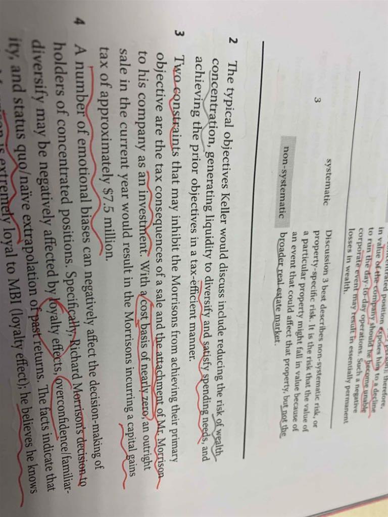 这个题让表述和讨论一下通过直接卖掉过于集中的头寸,M达成主要目标能力上的两个约束。
