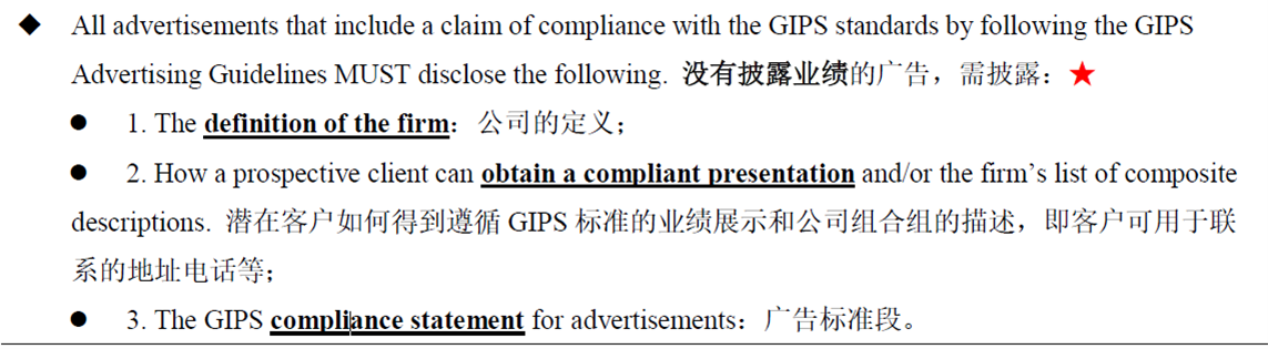 做广告的时候,没有披露业绩,在正文中和广告里分别说什么?老师讲的没听懂