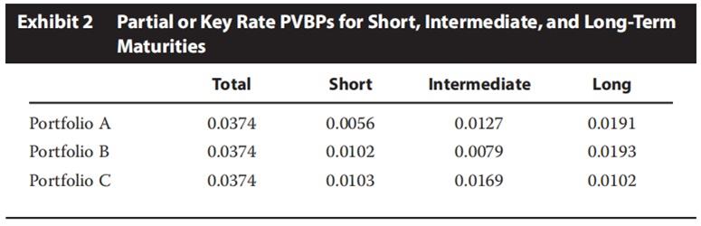 要判断是哪种组合策略,主要看PVBP的分布情况,其实这个表格中的三个组合,不是太容易归类为barbell bullet 或是laddered。
