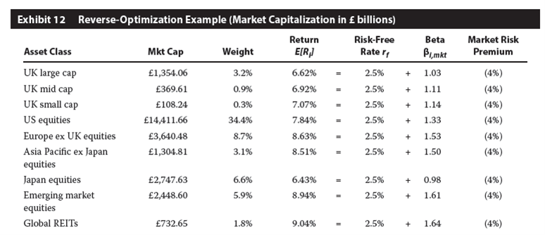 R13书后第15题, Reverse MVO中各项资产的E(R)不应该是由市场的权重和效用函数反推出来的嘛(纪老师上课讲得很清晰, 我也理解了)? 但是答案中说这个Reverse MVO的E(R)是CAPM算出来的, 这是啥意思? 我个人觉得纪老师说得更合理, 这个题中的点我之前没有注意, 回过来看的时候觉得和老师讲的有点冲突.