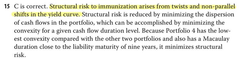 fixed income第三个reading中,当yield curve产生curvature时,应该要选择最大的convexity,但是curvature也是structural risk的一种,因为它也是non-parallel。