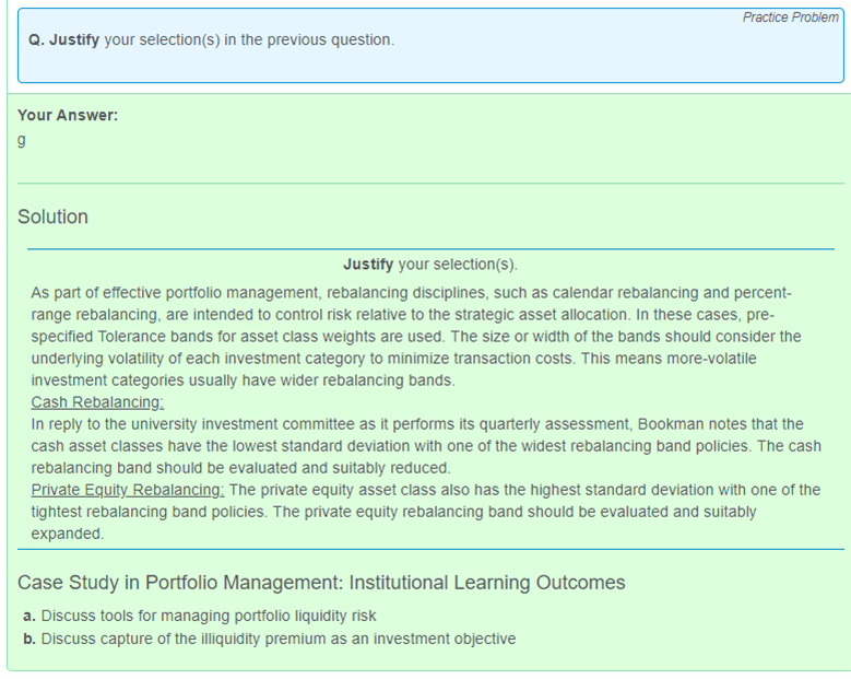 想請問基於Asset allocation reading,一個asset的volatility越大,the rebalance range 應該要越小,但是這邊卻是說,"The size or width of the bands should consider the underlying volatility of each investment category to minimize transaction costs. This means more-volatile investment categories usually have wider rebalancing bands." 請問rebakance ranger 應是越大還是越小?