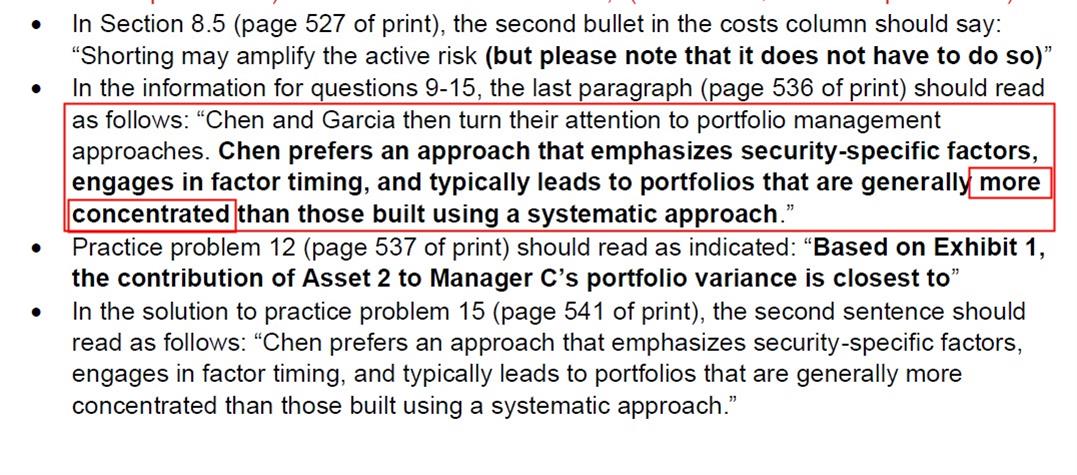 请教老师,15题是否解析有误?原文说的是要建立分散化的投资组合,解析说是集中头寸