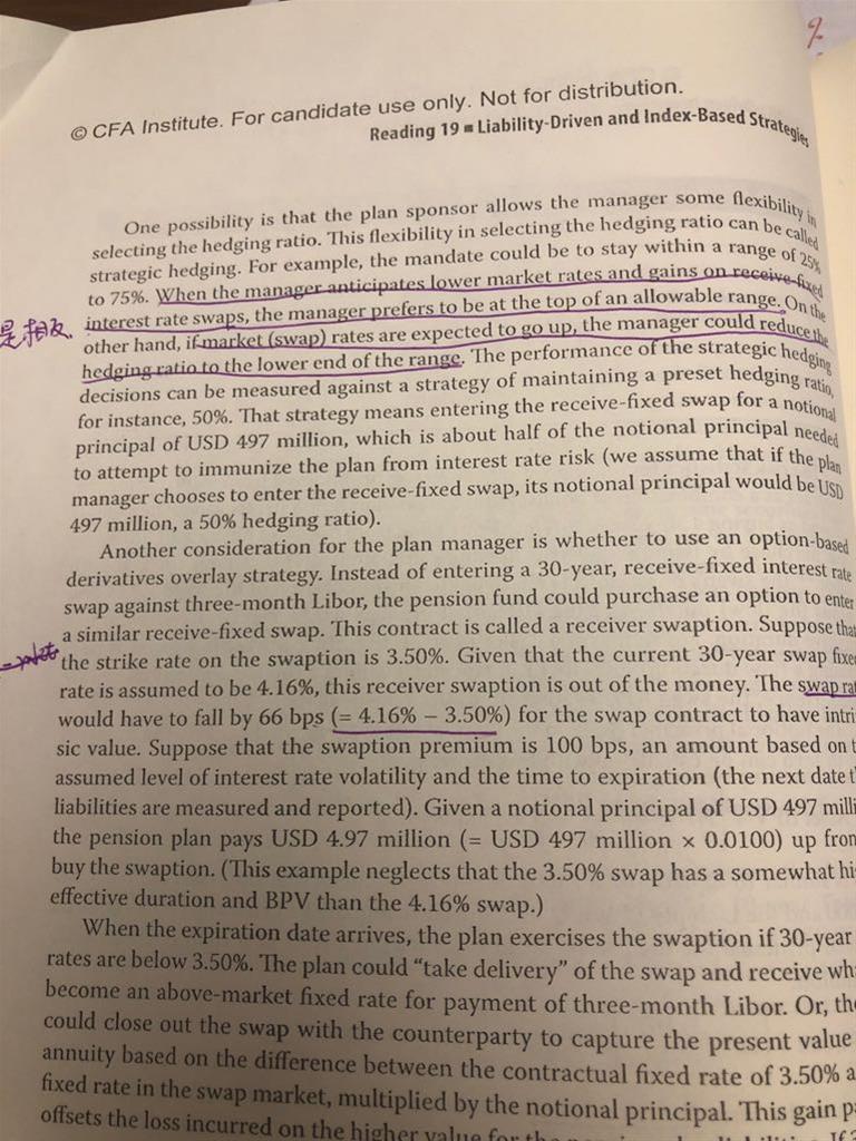 书中这里的描述建立在两个前提,使用的对冲产品为Receive-fixed swap,且为部分对冲。