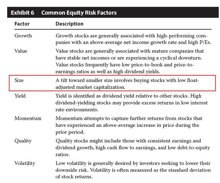 原版书reading 25 的exhibit2的这个表格如何理解?原文说因为size的系数是-0.16,所以判断是大盘股,负数不应该是小盘股吗?