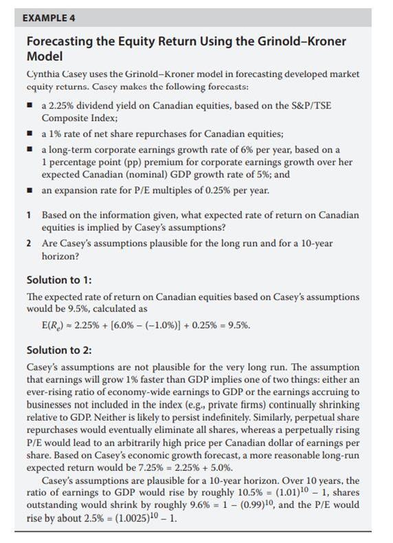 所以a more reasonable long-run expected return would be 2.25%+5.0%=7.25%,即长期仅考虑该国的GDP增长率和股利收益率