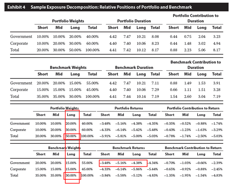 因为组合超配长期债券,所以duration effect是负的。而组合低配端期和中期的债券,因此这两个期限的债券的duration effect是正的。