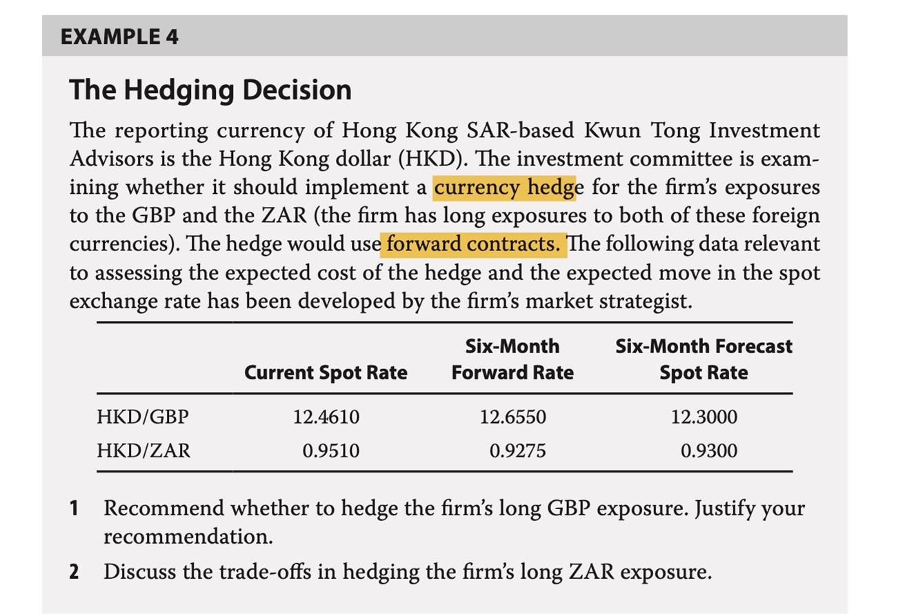 这道题的意思是相当于到期要从GBP换回HKD,看HKD计价的资产有无变化。如果对冲,相当于到期能以12.655的价格卖出GBP;不对冲,相当于到期只能以12.300的价格卖出GBP,资产缩水。所以会选择对冲。