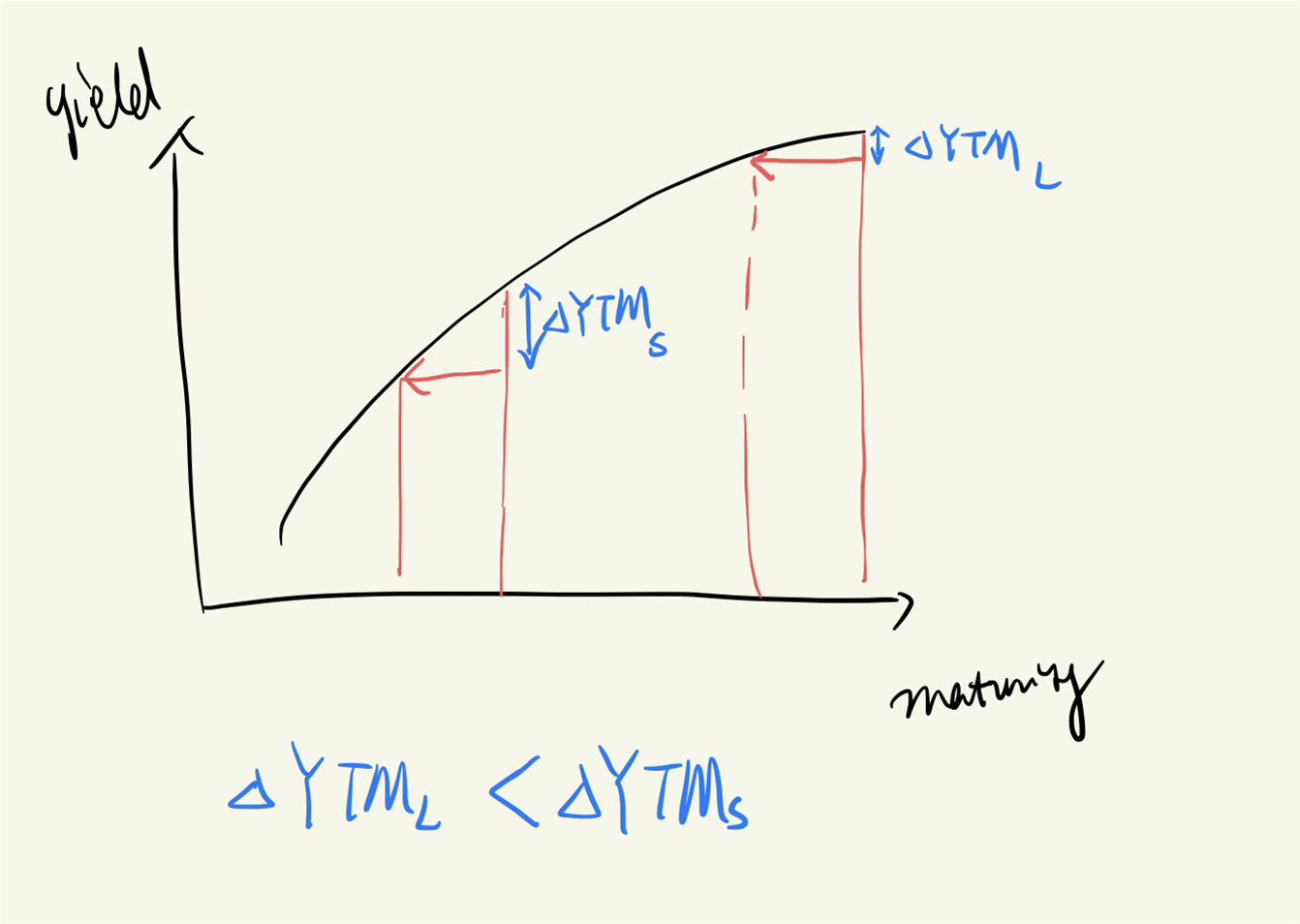 shift的变动是指收益率上下平移变动(各个期限上的变化幅度一致)。而衡量收益率平移变动对债券价格影响的指标就是久期,久期越长,那么收益率每上行一单位债券价格下降的越多。
