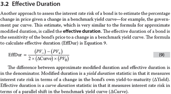百题段_SS7-8 Fixed income Portfolio Management_Case 1: Franconia Notch,第二题,statement one里说有一个小的平行移动的时候用有效久期去衡量为什么是对的呢?小的平行移动不应该是用修正久期吗?