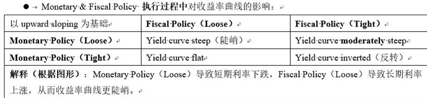 这部分建议同学以画图记忆为主,要说到具体为什么呈现不同形态的收益率曲线形状,可以结合经济周期思考在什么经济情况下会实行什么样的策略会帮助理解。