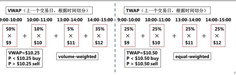 同学你好,因为TWAP这种算法的逻辑和TWAP作为benchmark是一样的。TWAP算法将订单切成较小的数量,然后按照等权重的时间表发送给市场的。 因此每个时间段安排的交易量一样。VWAP算法是按照基于历史盘中交易量配置文件的时间分割时间表发送给市场,如果之前的盘中有异常交易量数据,那么在那个时间安排的单量就会很大,因此易受异常值影响。