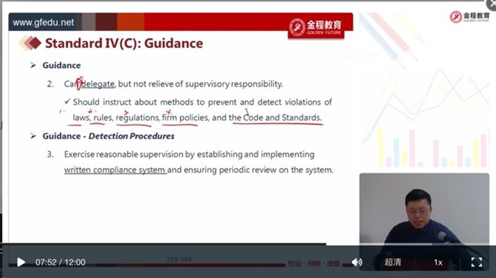 在Guidance部分,原文写道:A member's or candidate's responsibilities under Standard IV(C) include instructing those subordinates to whom supervision is delegated about methods to promote compliance, including preventing and detecting violations of laws, rules, regulations, firm policies, and the Code and Standards