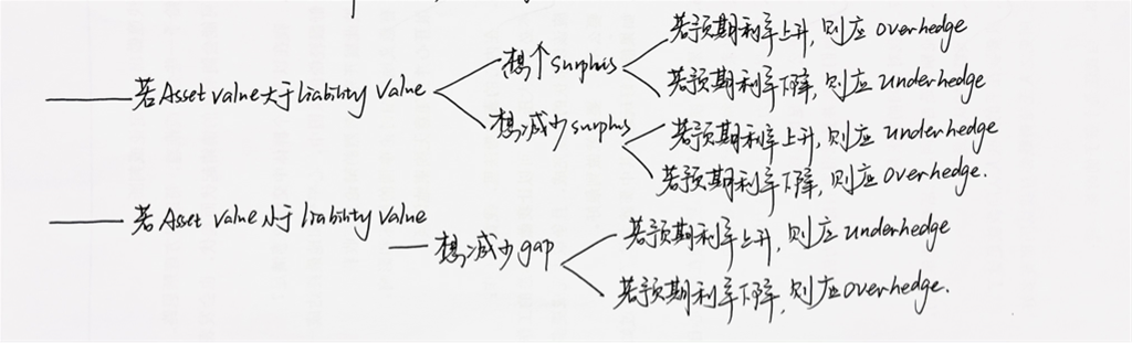 预期利率上升,可以under hedge,这样资产下降更少,负债下降更多,资产和负债更匹配;