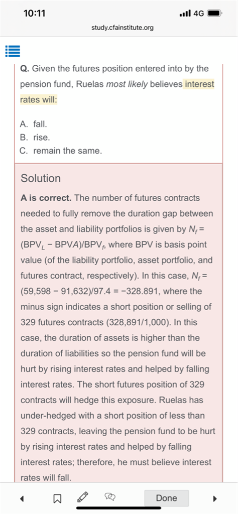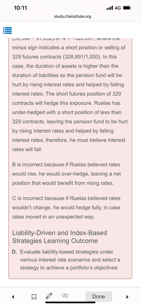 如何判断over hedge和under hedge所对应的interest rate变化趋势? 我看官网上的固收practice 第八题,说的是因为认为interest rate会下跌所以under hedge,但是模考题下午的Q22答案说的是over hedge 认为interest rate会下跌。