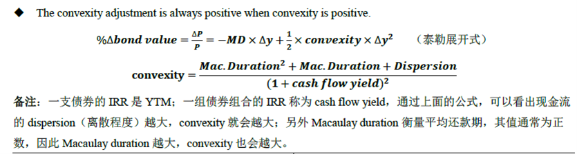 Note 2说R基金是有大量含权债券的,所以应该使用effective duration和effective convexity进行计算,如果是收益率的微小变动,使用effective duration即可,如果是较大变动,要使用effective duration和effective convexity进行计算。