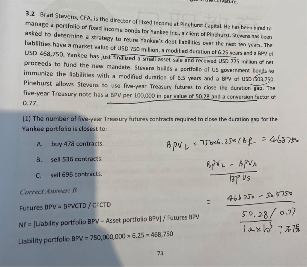 这个公式不管是调整贝塔还是duration,红圈的位置, 1.如果是futures ,有些题目是单价乘以m倍数,有些是market price of ctd bond。 2. 如果是swap,有些不用除以 100,有些除以100。 这个好乱,有点搞混了,怎么区别啊。
