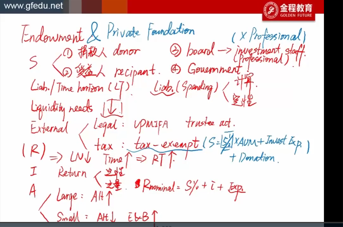 多谢,那在private foundation里面的那个spending rate为什么还要加上donation? 就是说法律规定每年donate的金额要全部花掉才能免税?如果某一个大doundation一年收了50亿的话也要花掉吗,这不会有shortfall risk 吗?