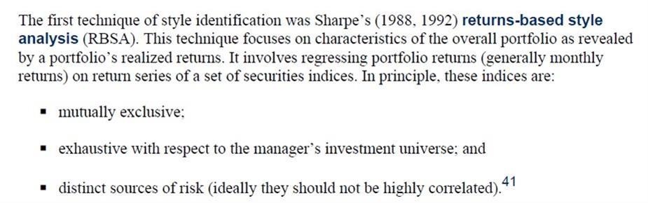 同学你好,这个是个比较老的考点。老的原版书里面这三点是有专门提到的(见图,2016原版书)。现在书里只提到各style 的indices要比较低相关性,这三点是没再有表述了,所以同学这题可以不必纠结了哈。