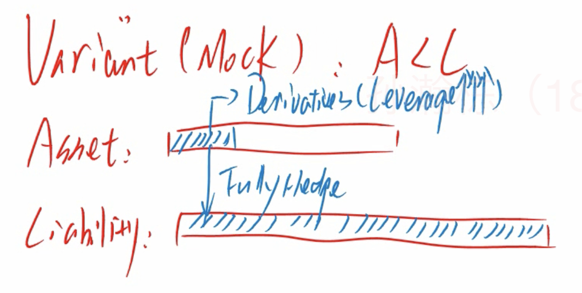 是这里老师讲的时候用了mock题的一种方式进行讲解,提到了可以利用高杠杆的derivatives来实现对liability的fully hedge