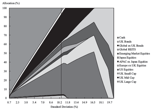 同学你好,corner portfolio都是位于有效前沿上的,所以current portfolio不是corner portfolio,因为它位于有效前沿下方。比较夏普比率就是把Rf和各点相连,连起来的直线如果斜率越大,那么代表该组合的夏普比率更高,所以从图中能看出policy portfolio的夏普比率更大,它比TAA更好。B选项说的是corner portfolio的定义,可以看下图。下图中的折线拐点处就是corner portfolio,也就是斜率发生变动的点