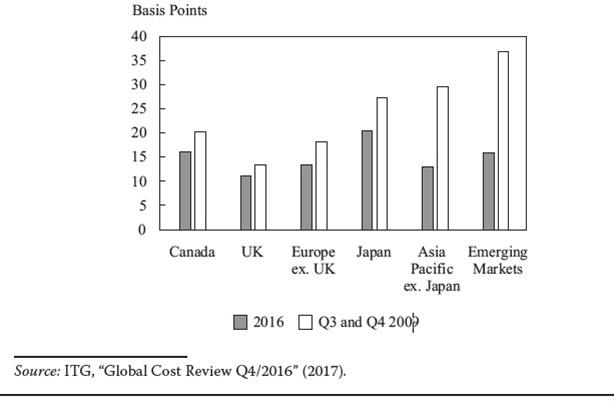 同学你好,这个结论来自于原版书,它是根据2009和2016年的两份对于全球各市场滑点成本的统计的实证研究得出来的(见图)。根据此研究,新兴市场的滑点成本并没有显著高于成熟市场(根据2016年的数据,新兴市场的滑点成本较2009年显著降低)。