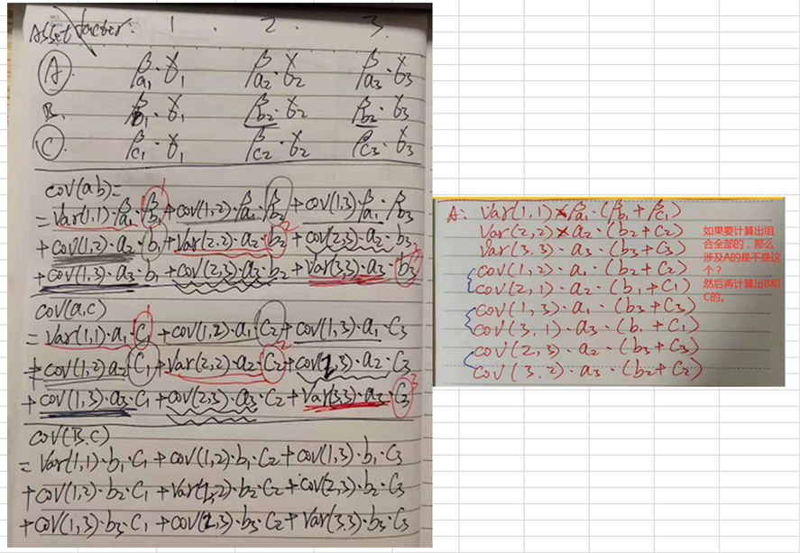 后面那个图,是在计算组合全部的方差和协方差的时候,我将所有涉及到A资产的式子全部合并到了一起,还有涉及B和C资产的我没写了。