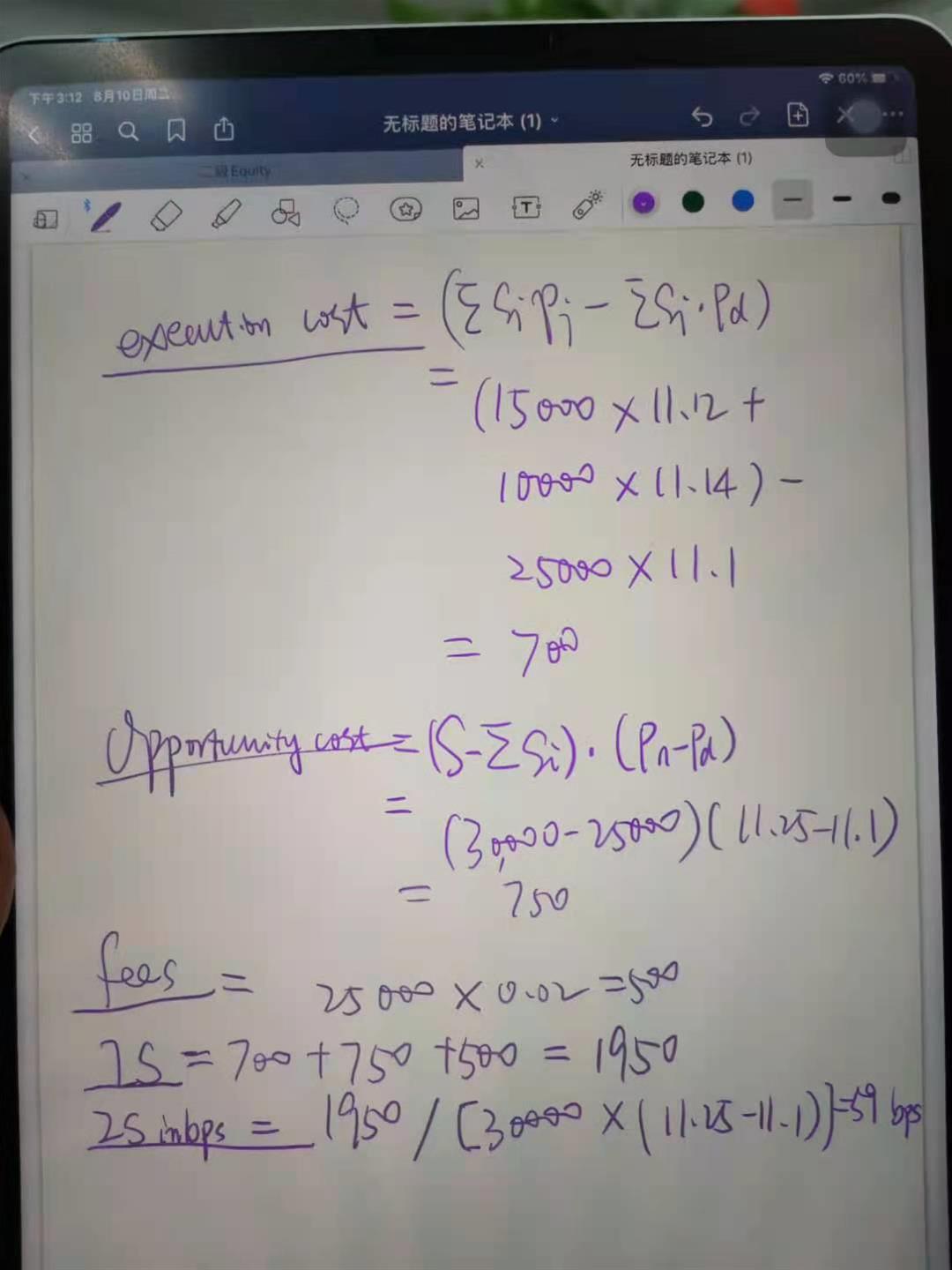上午题b题中的execution cost . opportunity cost transaction cost 分别怎么计算的,我算出来和答案不一样
