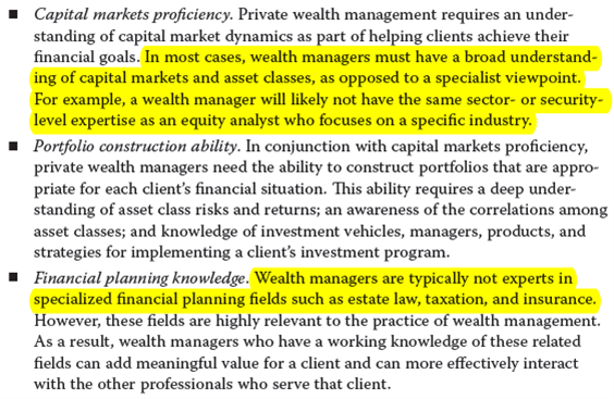这里题目说明现在需要寻找的投资经理应该拥有什么技能。财富管理经理必须对资本市场和资产类别有广泛的了解,而不是特定行业或证券层面的行业专家;