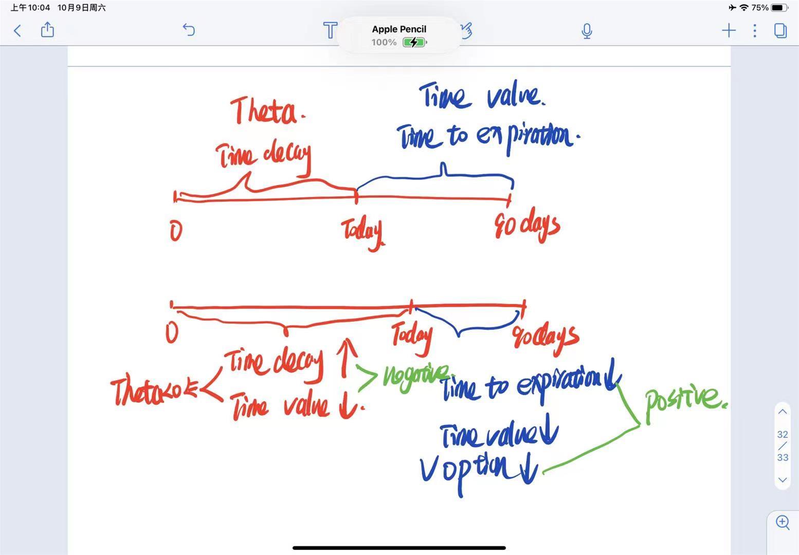 而theta是随着time decay,对期权价值的变化。time decay是已经过了的时间,而到期期限是指当前时间离到期时间还有多少时间。他们逻辑是反着的。