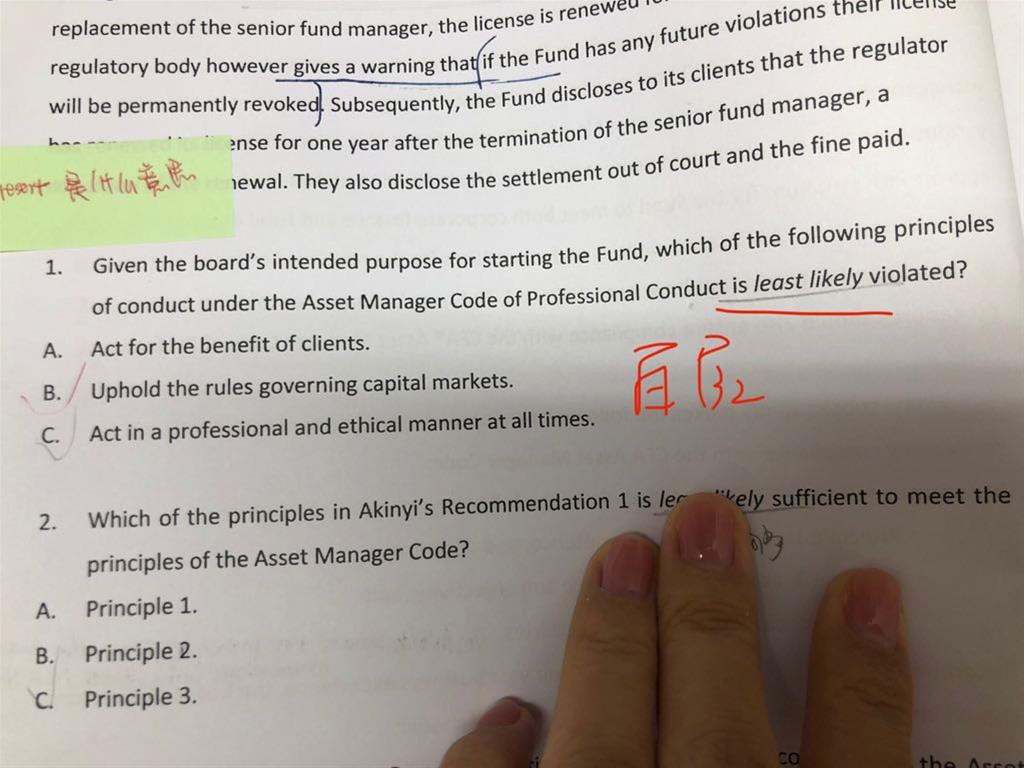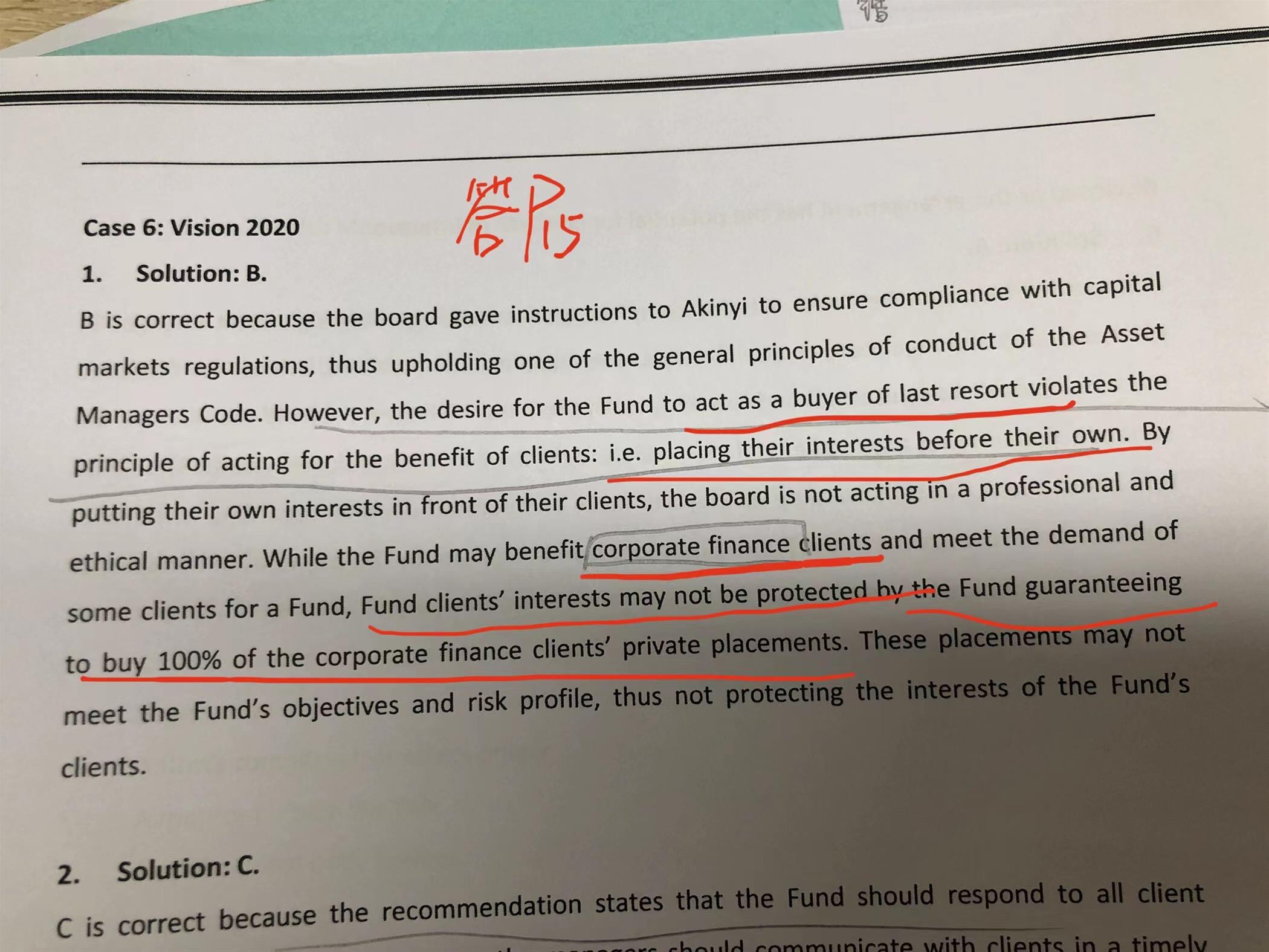 老师您好,你讲解得很清楚, 但是我还想问一下,这些客户投资里这些风投, 这个基金会作为最后买方把客户的私募股权买回来,这不是对于客户很好吗?怎么能说the fund place their interest before their clients呢? 还有答案里面corporate finance clients是什么意思呢?没见过。 谢谢