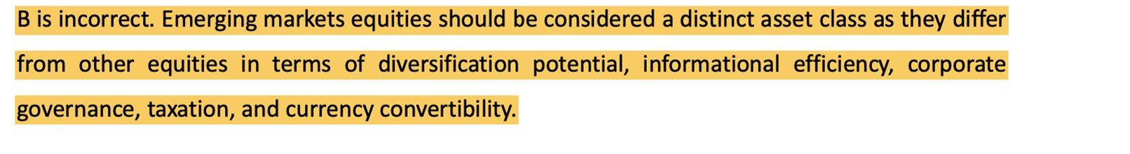 这句话在原题里是错的,正确答案写的是这句话,老师。那新兴市场股票到底该不该拆,同理US equity,Euro equity,该不该拆出来。