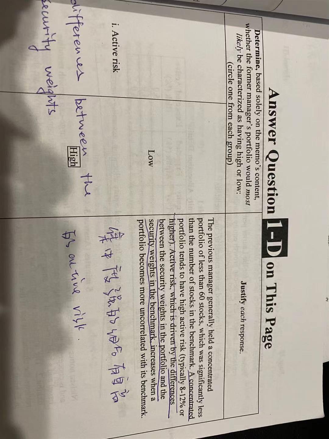 老师请详见往年真题2018年Equity的D问答案,是不是答案有问题?说这句话描述的是active risk