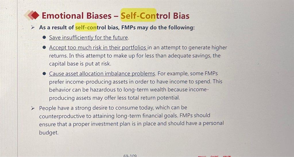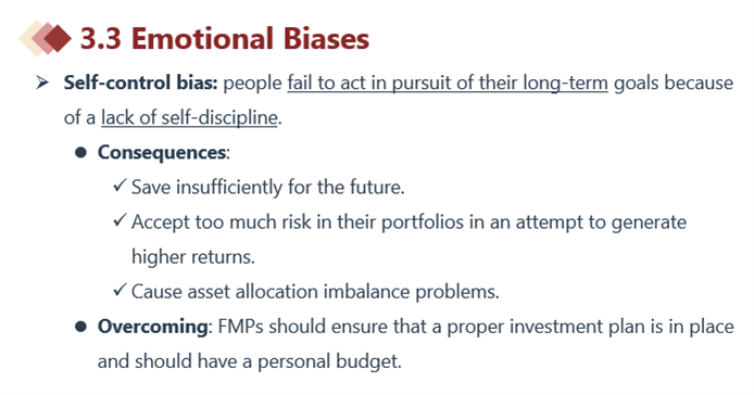 不是啊 就是行为金融学里的bias😅就是客户因为控制不了自己的日常支出,投资了大量的债券,牺牲长期的增长。这个我记得是叫consumption- saving bias,和self control有一点像。