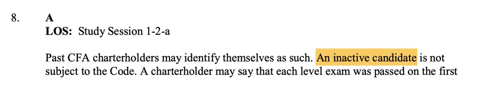 问题1:candidate暂时还不被要求遵守code&standard?只有member/charterholder被要求遵守?问题2:那只有current charterholder需要遵守,还是past charterholder的也要?问题3:member和charterholder什么关系?问题4:inactive candidate是什么?