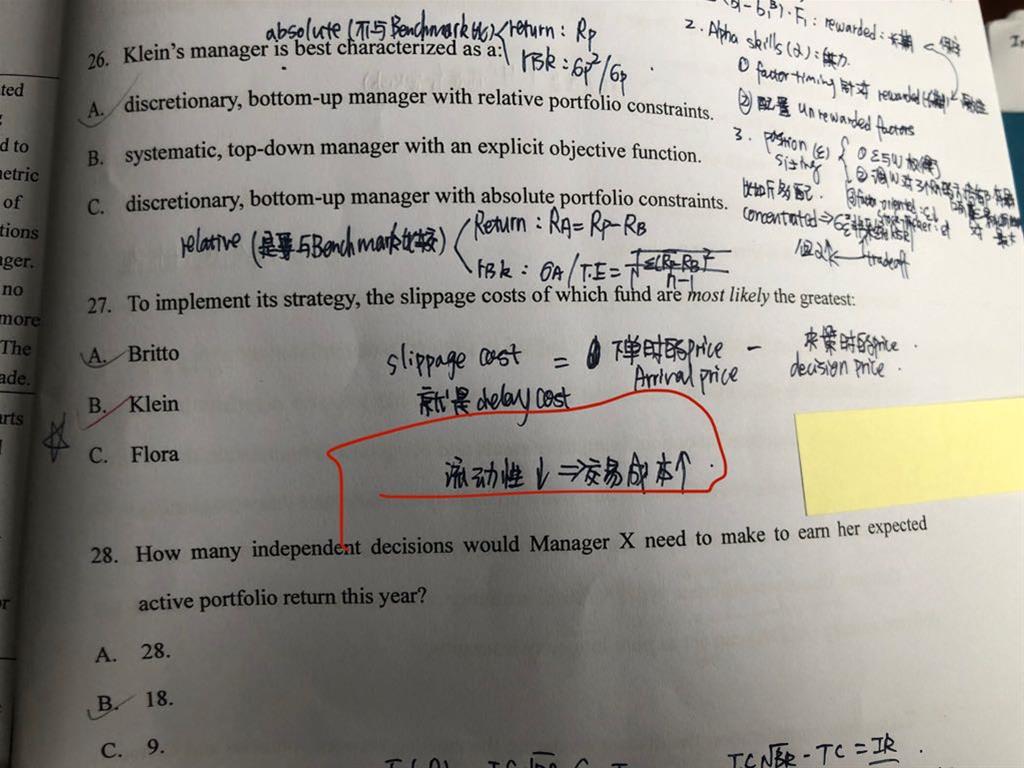 老师好 考试时,case不会说明topic,我也不知道这是equity的slippage还是交易中的slippage,比如这道题,slippage cost=delay cost,但是这个case前面标注的是equity,好像跟你说的正好相反.谢谢