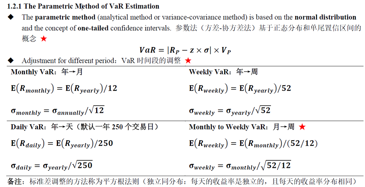 第一种方法就是参数法,用预期回报减去Z值乘以标准差