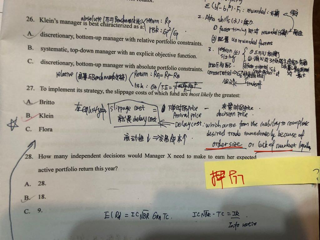 1.押题17题,因为管理资产较大,则下单的规模就较大,假设整体管理的资产为10亿,一般交易的仓位也是较大的,不会小单交易,这样很麻烦也很没有效率;