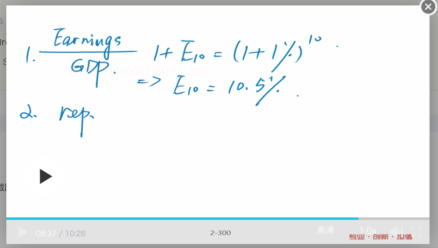 请问老师这道题在计算10年的return的时候,为什么计算的是earnings/GDP比例,而不是GDP增长的绝对值?