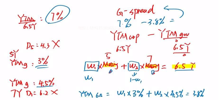 再多问一句,刚听MOCK1里8E,老师讲课最后补充讲解计算G-spread的不同考试题型时,介绍了用期限相同的公司债和政府债轧差得到,强调这里的期限如果需要用线性插补法计算,用的是时间的期限,不是两个债券的duration,这个和那个immunization用duration来做离散标准的差异在哪里啊?整不太明白,谢谢。