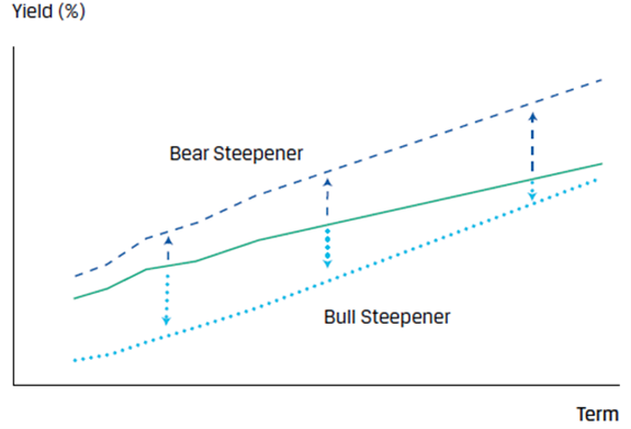 ,即投资组合会在收益率曲线更陡峭(短端下降更多,长端下降更少)或利率降的更低时获益(因为在短期利率下降时债券价格上升,而主要的净头寸就是看涨债券)。