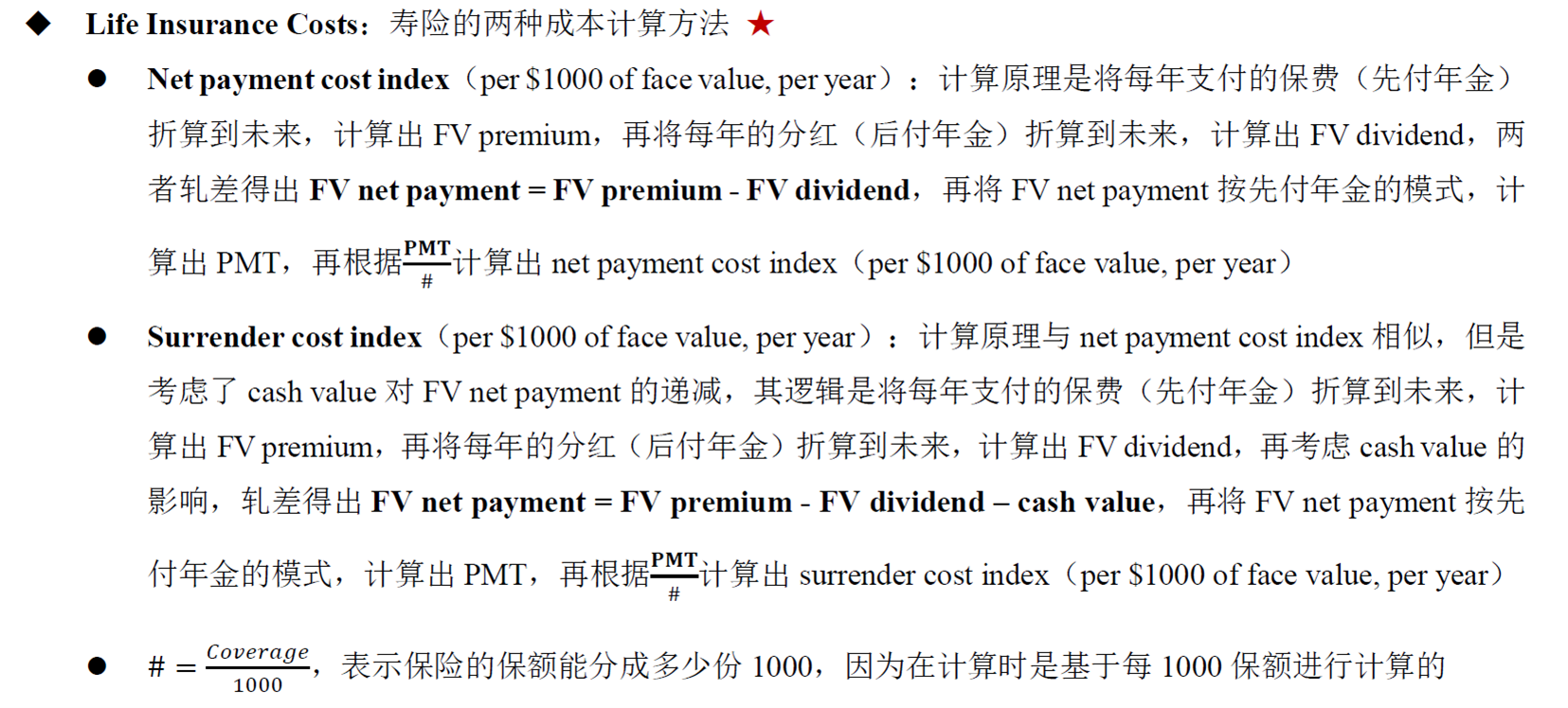 这块的计算有两个角度,其中net payment cost index是不扣减cash value的。
