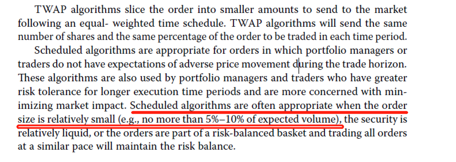 在讲question10的时候老师有反复提到TWAP适用于small order的reference price,因为没有在讲义里看到,想问下是教材中有提到吗?具体是在哪里?