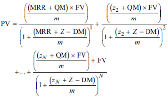 zero-discount margin本质上还是一种利差,将远期MRR纳入FRN的收益率利差计算。可以将固定利率债券的G-Spread类比为浮动利率债券的DM,而将固定利率债券的Z-Spread类比为浮动利率债券的Z-DM。参考下图公式理解。