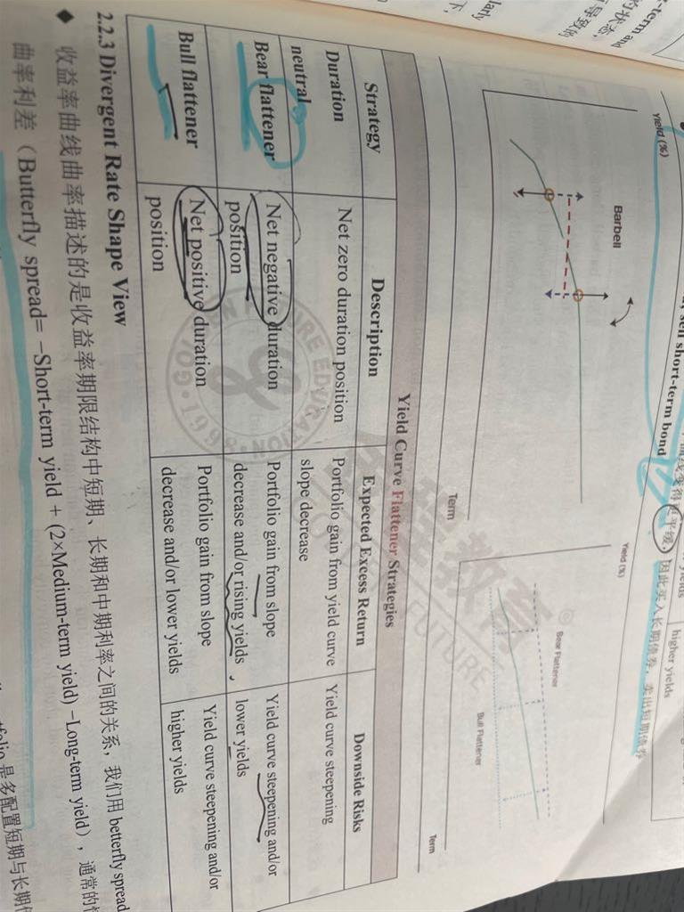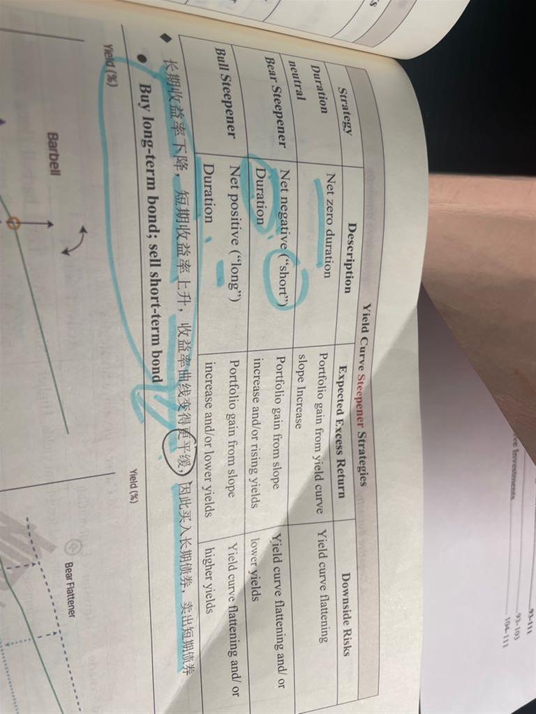 老师,很多课后习题都有问bear flat及 bear steep ,能不能详细讲解下这些情况下如何做yield curve strategy