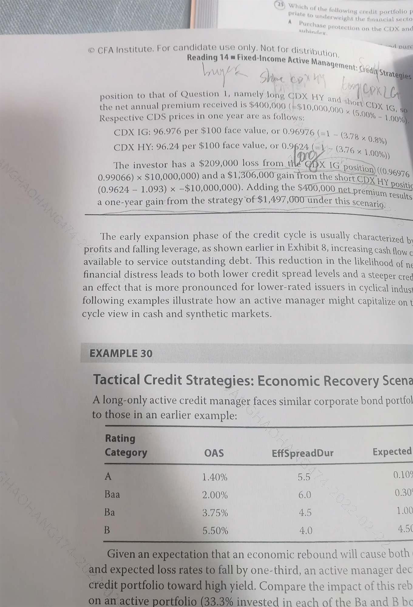 2. 同上述逻辑相同,short CDS就是保护的买方,看衰信用质量,在信用利差扩大时获益。