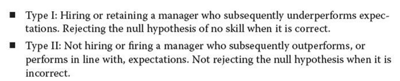 如果业绩存在均值回归,那么原来的业绩好的,未来就会业绩差。那么雇佣现在业绩好的就是雇佣未来业绩差的基金经理,因此属于一类错误。但是,按照之前的定义,开除现在表现差(未来表现好)的基金经理是二类错误,而这里也认为是一类错误,和之前的定义有矛盾,但协会也没勘误。