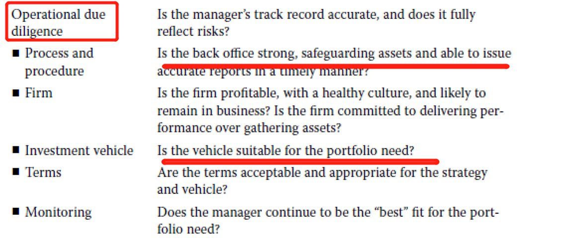 因此只有C属于investment due diligence涉及的问题。两个due diligence涉及到的因素参考下面两张图。