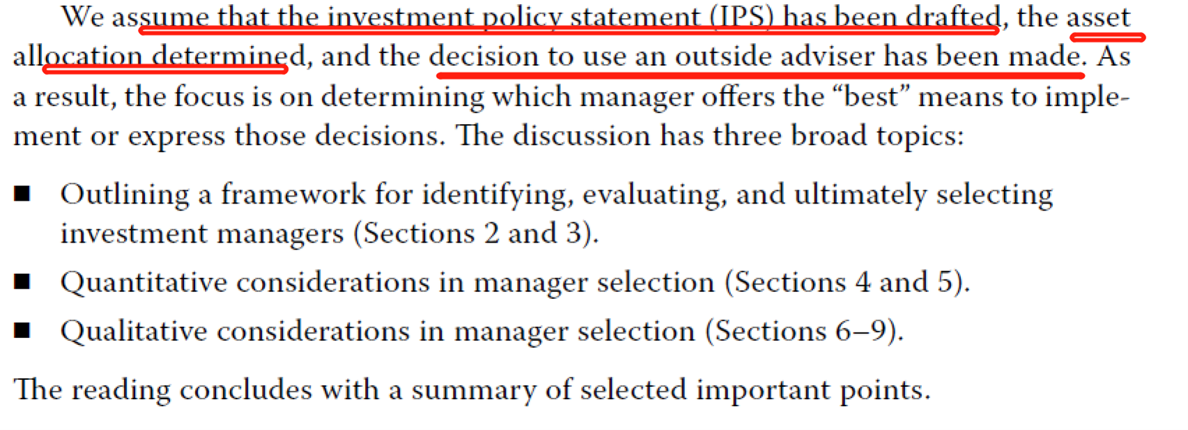 也就是说,有哪些点是需要在做manager selection的分析前完成的。